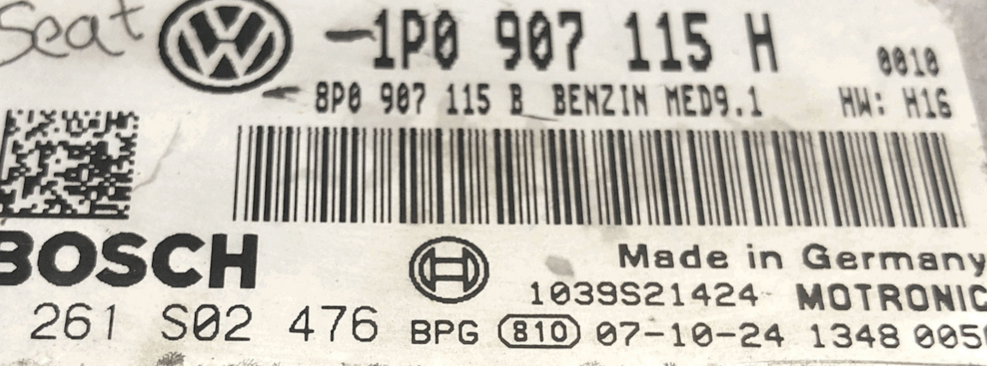 Plug & Play Bosch Engine ECU, Seat Altea, Leon, Toledo 2.0 TFSI, 0261S02476, 0 261 S02 476, 1P0907115H, 1P0 907 115 H, MED9.1