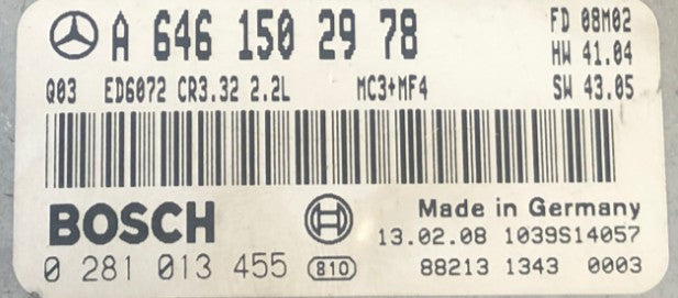 Plug & Play Bosch Engine ECU, Mercedes-Benz 115 CDI Vito, 0281013455, 0 281 013 455, A6461502978, A 646 150 29 78
