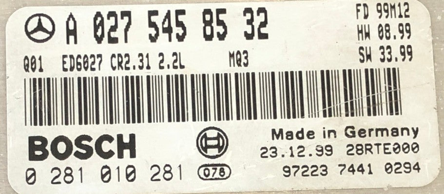 Plug & Play Bosch Engine ECU, Mercedes-Benz CDI, 0281010281, 0 281 010 281, A0275458532, A 027 545 85 32, CR2.31