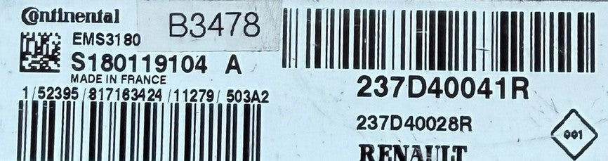 Plug & Play Continental Engine ECU, Renault Kangoo EV, S180119104 A, 237D40041R, 237D40028R, EMS3180