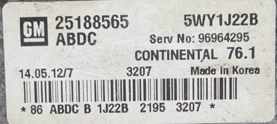 Plug & Play Siemens Engine ECU, Chevrolet, 25188565, 5WY1J22B, 96964295, 76.1, ABDC